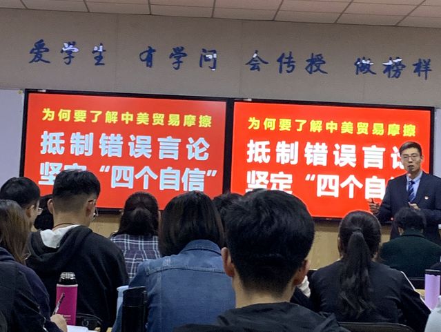 按照落实公司“不忘初心、牢记使命”主题教育工作安排,为加强师生党员对当前国内外形势的了解,10月24日下午,公司邀请马克思主义公司形势与政策系岳松老师就中美贸易争端为师生作了一场生动的形势政策报告。报告会由党总支书记吕延苹主持,公司全体师生党员参加。