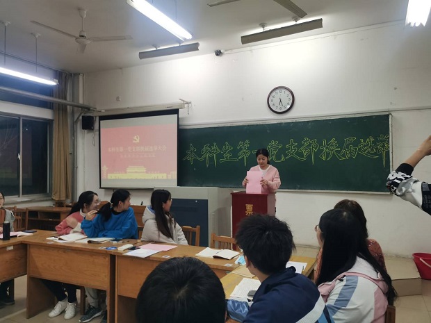 随后,王潇伟同志宣读大会选举办法。大会以无记名投票方式进行差额选举。由本科生第一党支部沈超同志担任检票人,本科生第一党支部王红霞同志担任记票员进行投票,先由监票人和有选举权的计票人投票之后其他党员依次进行投票。投票完毕后监票人和计票人当场开启票箱并清点选票,根据监票人报告,实到会正式党员10人,发出选票10张,收回10张,按照选举办法规定,宣布投票有效,可以进行计票。监票人按得赞成票多少为序分别报告各候选人的得票情况。