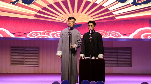 紧接着歌曲串烧、小品、情景剧等精彩迭出,引发阵阵掌声。相声《规矩论》在诙谐幽默的同时传递出要学会变通的道理。