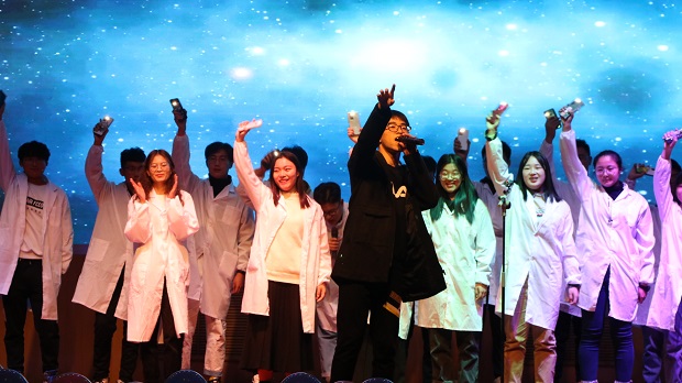 晚会最后,由全体辅导员带来的歌曲串烧让同学们眼前一亮,导员们的多才多艺改变了同学们心中对他们严肃认真的印象,给晚会带来一个完美的结尾。