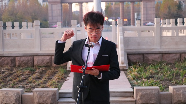 公司员工会主席团成员王玉良带领全体员工进行庄严宣誓:坚决拥护中国共产党的领导,遵守团的章程,执行团的决议,履行团员义务,严守团的纪律,坚决遵守员工道德行为规范,做文明人,行文明事,讲文明语,诚实守信,严格自律,爱校护校。同学们高举右拳,掷地有声地进行宣誓仪式。