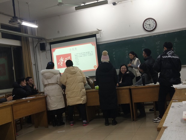 此次挑战赛分为小组接力答题和个人挑战两个环节。在小组接力答题中,共分为五个组,分别由支部老师和正式党员担任组长,带领七名同学抽签进行答题。比赛过程,同志们兴致勃勃,有的摩拳擦掌,跃跃欲试;有的小心谨慎,认真准备;还有的心怀忐忑,战战兢兢。比赛正式拉开帷幕,王潇伟和卢博的答题正确为同学们打下良好开端,比赛激烈而又紧张的进行着,每轮比赛结果胶着。最终,除了八道题全部答对的二组,其余四组并列第二,为了决出胜负,比赛随机加赛两题。最后由比赛前三组领取定制笔记本作为奖励。