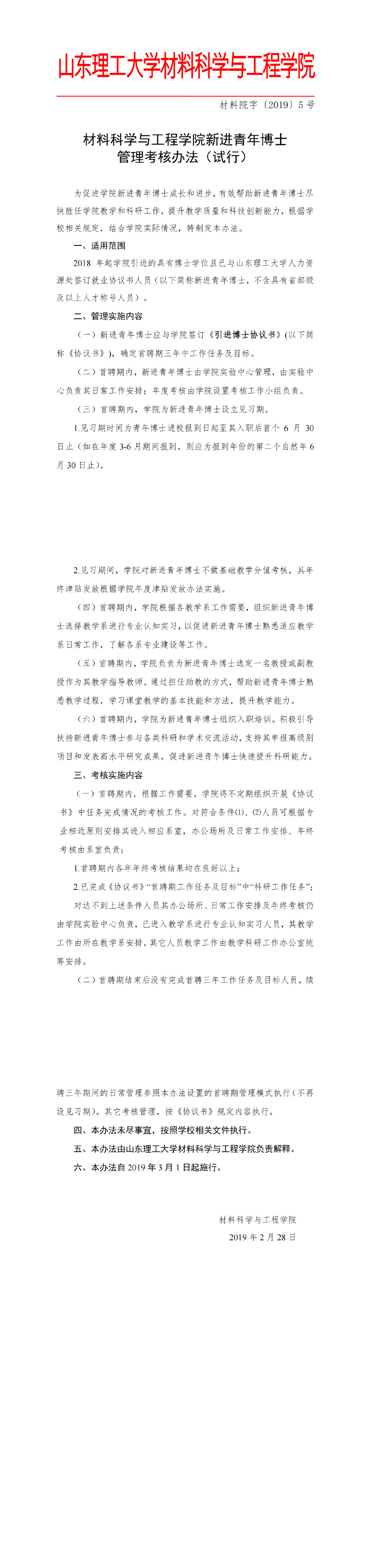 材料院字〔2019〕5号-青年博士管理考核办法