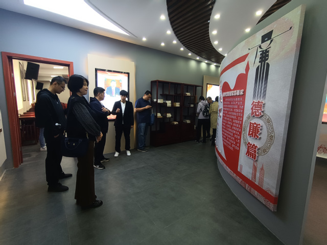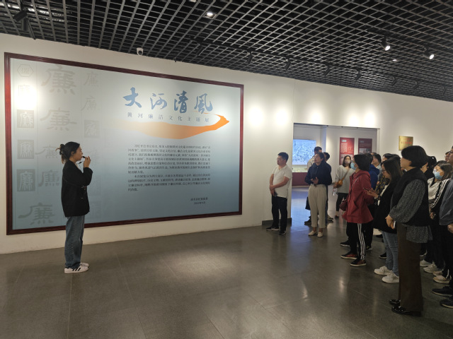 “大河清风·黄河廉洁文化主题展”,全体人员共同参观了“黄河汤汤·盛世安澜”“黄河政风·廉明勤果”“黄河民风·崇廉尚德”“黄河家风· 持廉守正”四个展区,教职工们通过参观碑刻拓片、巨幅油画、文献资料等丰富的馆藏文物资源,倾听治黄能臣、清官廉吏的廉洁事迹,深切感受到了廉明勤果、崇德尚廉、持廉守正的廉洁文化精华,领悟到了齐韵黄河视角下廉以养德、克己奉公等廉洁文化的时代价值。