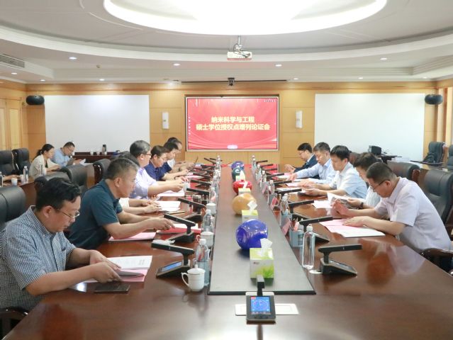 经理杜庆洋就纳米科学与工程硕士学位授权点建设相关情况作了专题汇报。他从学位点建设必要性和意义、二级学科设置、团队力量、培养条件等方面介绍了增设学位点的紧迫性与可行性,详细汇报了该授权点的人才培养方案。