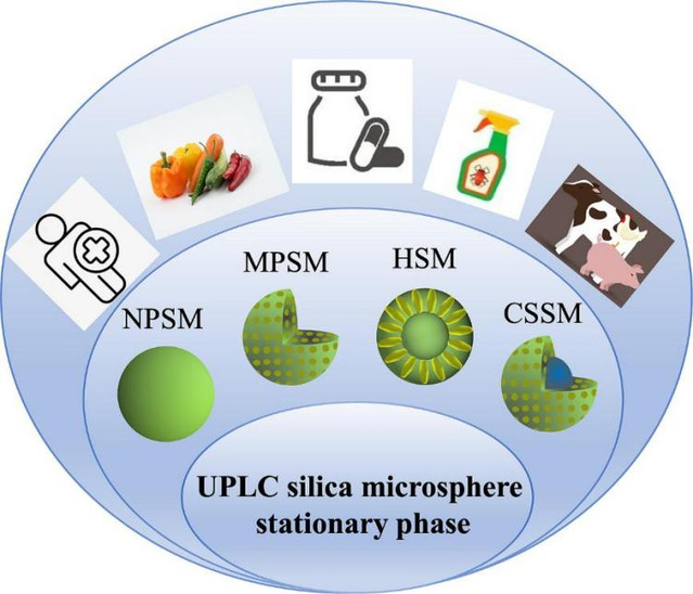 本文结合近年来的相关文献,对超高效液相色谱微球技术进行了综述。随着人们对色谱的要求越来越高,超高效液相色谱(UPLC)固定相的制备和应用已成为该领域研究人员关注的焦点。UPLC不仅保持了高效液相色谱(HPLC)的实用性,而且提高了液相色谱的阶跃函数。文章详细对比了用于UPLC的4种亚2 μm二氧化硅微球的形貌,包括无孔二氧化硅微球(NPSMs)、介孔二氧化硅微球(MPSMs)、空心二氧化硅微球(HSMs)和核壳二氧化硅微球(CSSMs)。同时,进一步总结了不同形貌微球的制备、孔径控制和修饰方法,并介绍了UPLC在药物分析分离、环境监测、大分子蛋白分离等方面的应用。最后,简明扼要的指出了用于UPLC固定相的亚2 μm微球制备过程中存在的问题以及未来发展的方向。