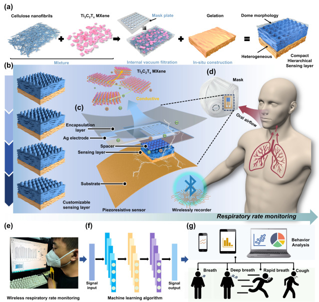 呼吸频率监测是呼吸系统疾病早期诊断与健康管理的关键环节,但由于其高度依赖动态生理信号,传感器往往在湿度、温度及机械运动伪影的干扰下出现信号失真和监测精度下降,严重限制了可穿戴传感器在复杂环境中的长期可靠应用。传统传感体系普遍面临“灵敏度与稳定性难以兼顾”的矛盾。