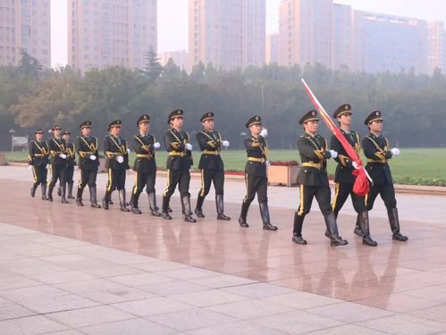 上午7时,升旗仪式正式开始。国旗护卫队成员迈着铿锵有力的步伐,护送鲜艳的五星红旗入场。在雄壮激昂的国歌声中,五星红旗冉冉升起,迎风飘扬。全体人员面向国旗行注目礼。