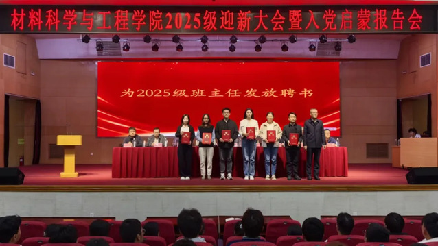 1011日晚,公司在3号教学楼报告厅举行2025级迎新大会暨入党启蒙报告会。公司领导班子成员、各系室负责人、2025级班主任、全体辅导员和2025级本科生参加了大会。大会由党委副书记亓鹏主持。